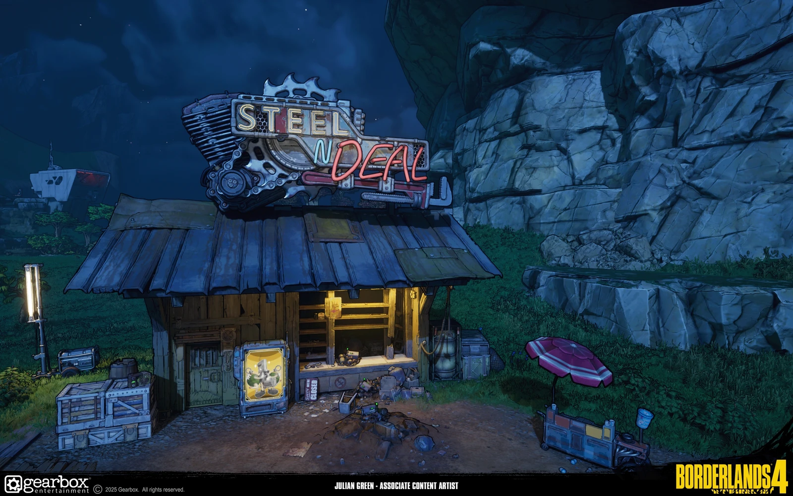 Signage for a shop in the grasslands. Shout out to one of our tech artists, Laython Whitmire for helping me with a blinking neon light material!